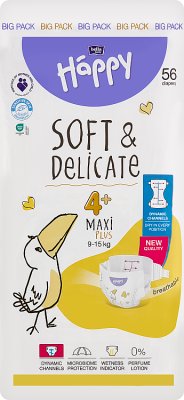 Pieluszki jednorazowe. Nowoczesna konstrukcja zapewnia optymalną chłonność i wysoki komfort użytkowania. Produkt z atestem NIZP-PZH Pozytywna opinia Instytutu Matki i Dziecka nr Op-5544, ważna do 30.04.2026 r.